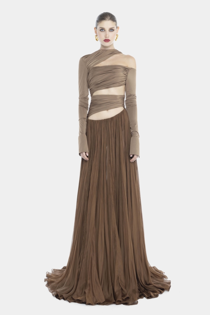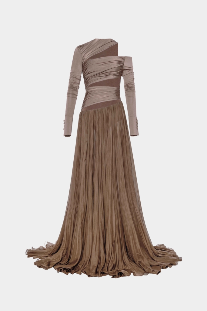 American singer Charlotte Lawrence stole all the spotlights in a CONG TRI design, attending A Sense of Home Gala in Beverly Hills. The brown dress had the ethereal pleated bottom and assertive cutout details, accentuating Charlotte’s alluring feminine beauty.