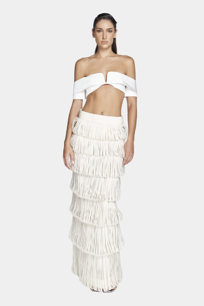 American actress Esmeralda Pimentel made a fashion statement in a CONG TRI design, attending the Platino Awards in Madrid. The set’s creative highlight is the house’s signature handmade craftsmanship in sumptuous white faille. The refined silhouette brought out Esmeralda’s modern elegance and sophistication.