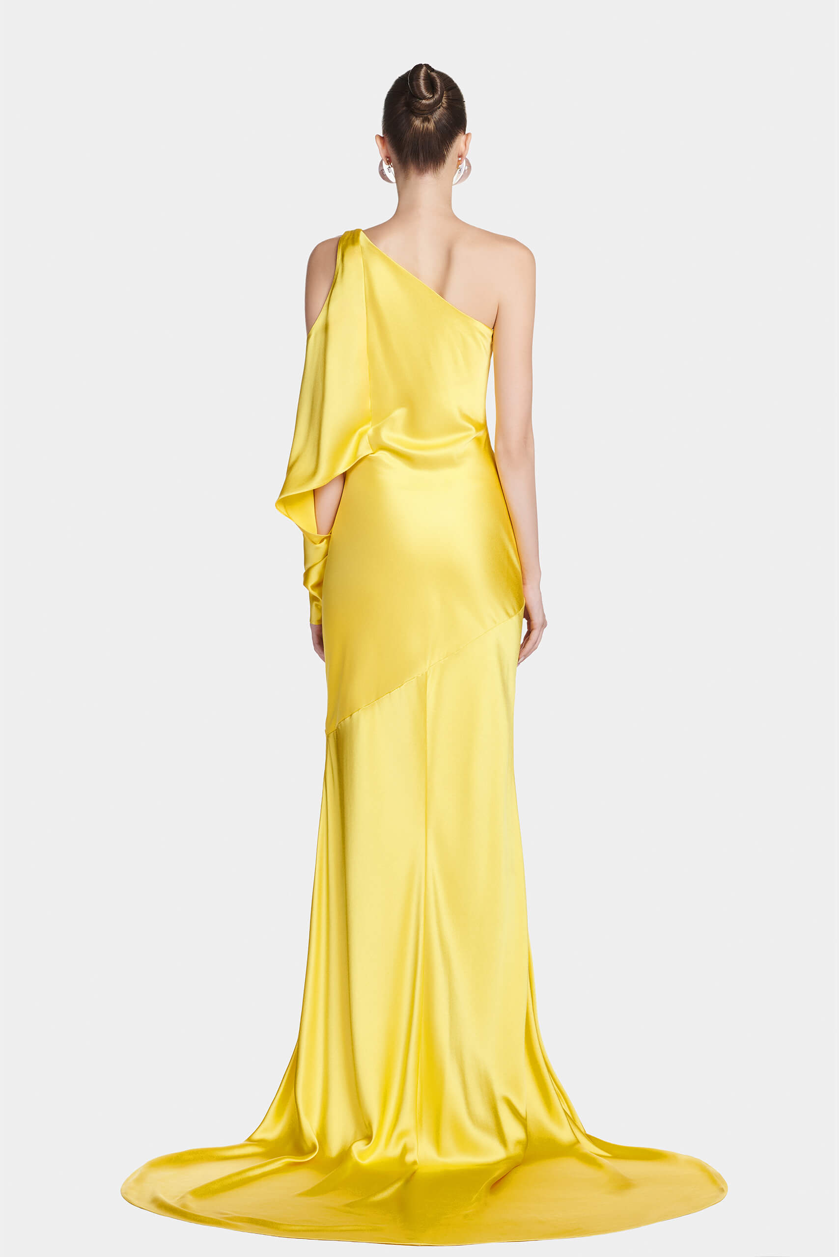 ONE-SLEEVE SHOULDER CUT-OUT SATIN DRESS