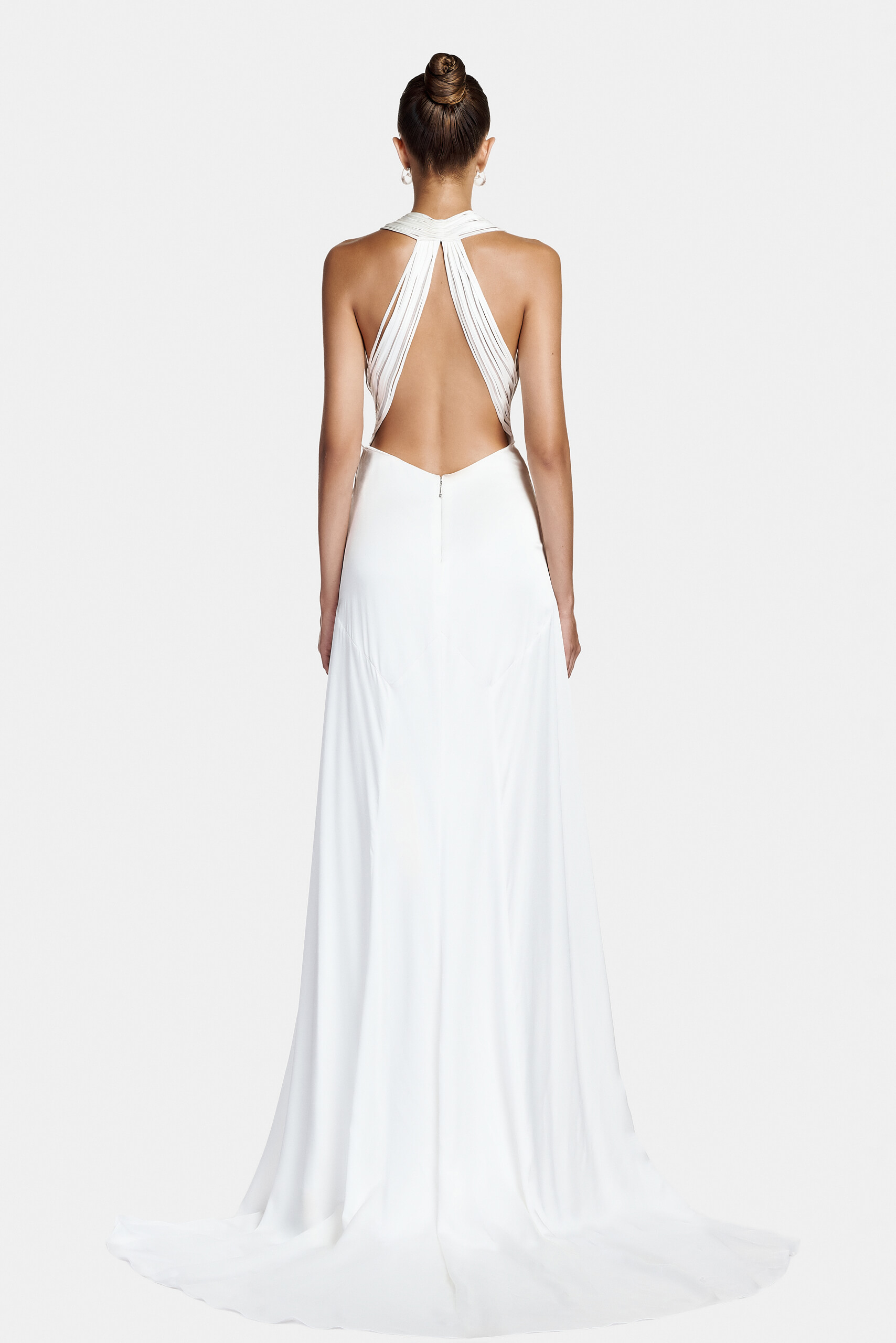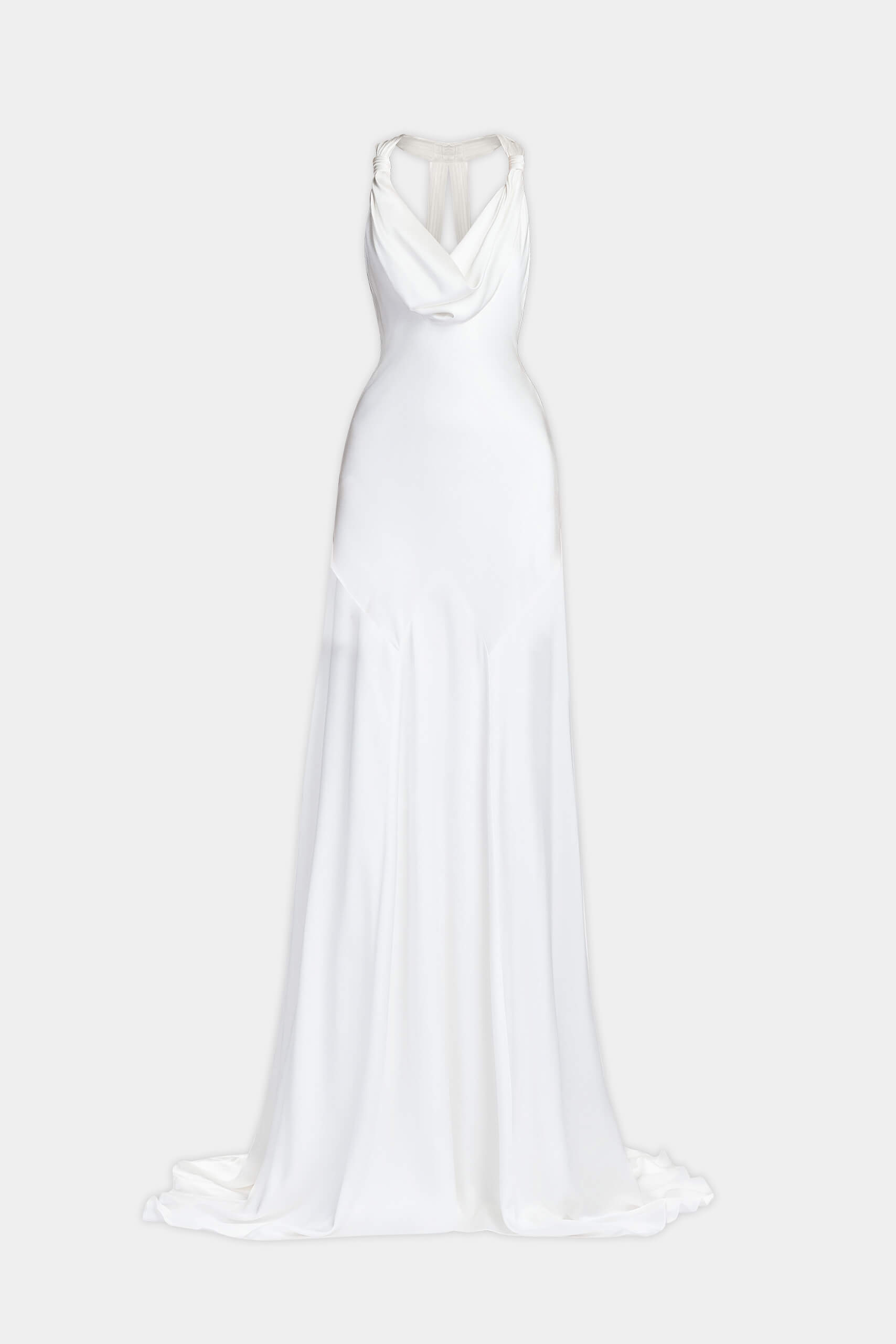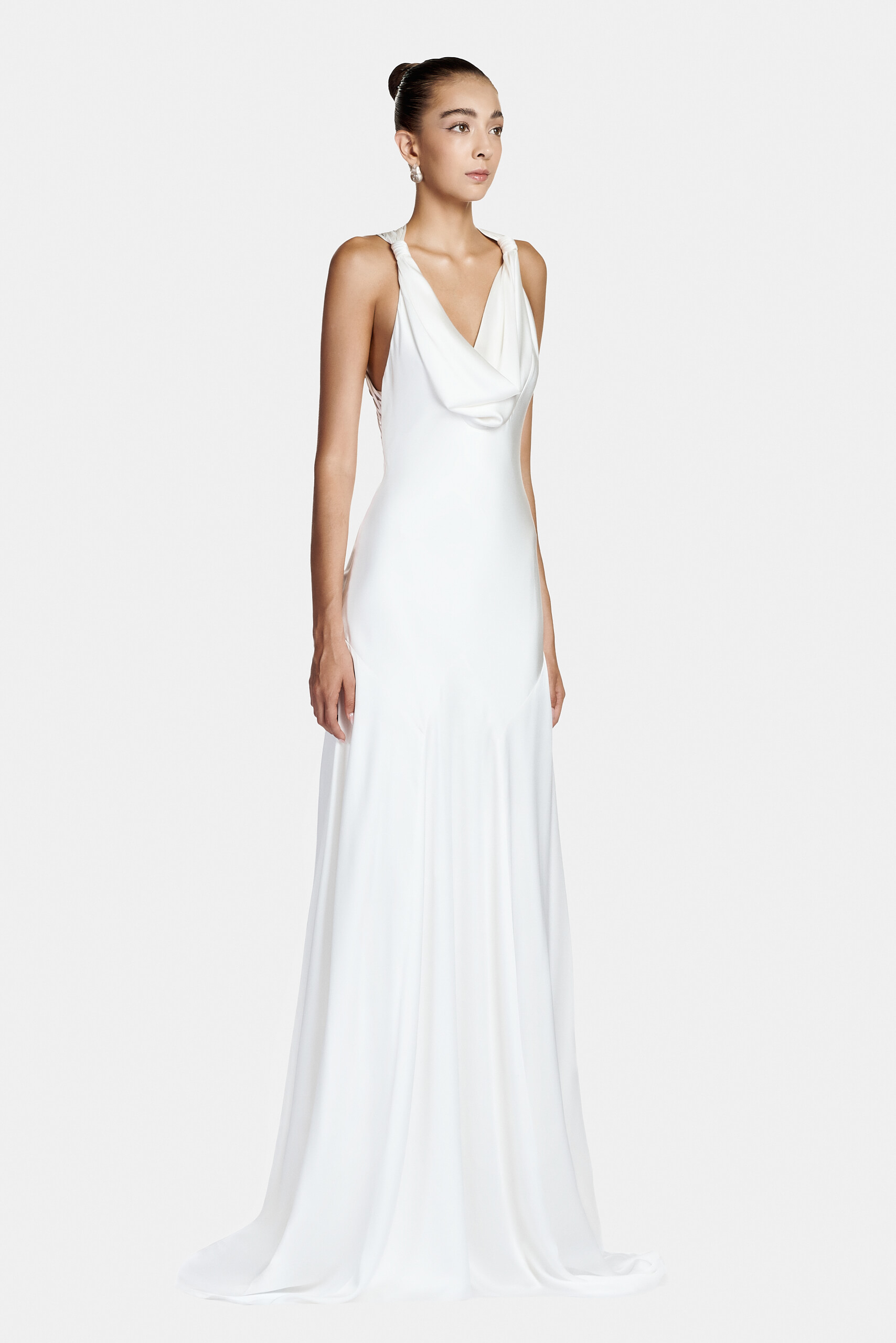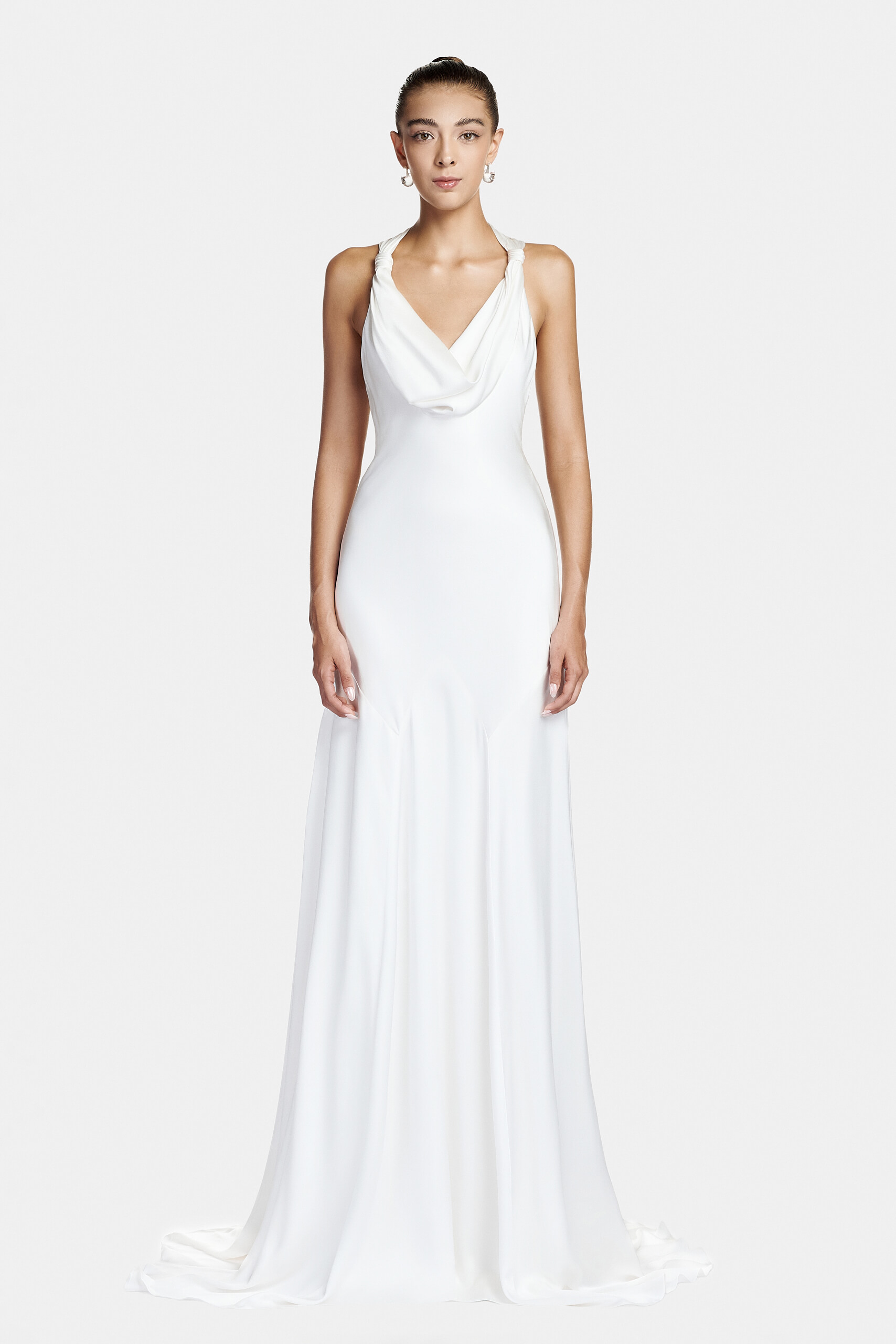 The dress embodies timeless elegance through the fluidity of satin. Its clean silhouette enhances the fabric’s natural sheen, creating a look that is both minimal and refined.