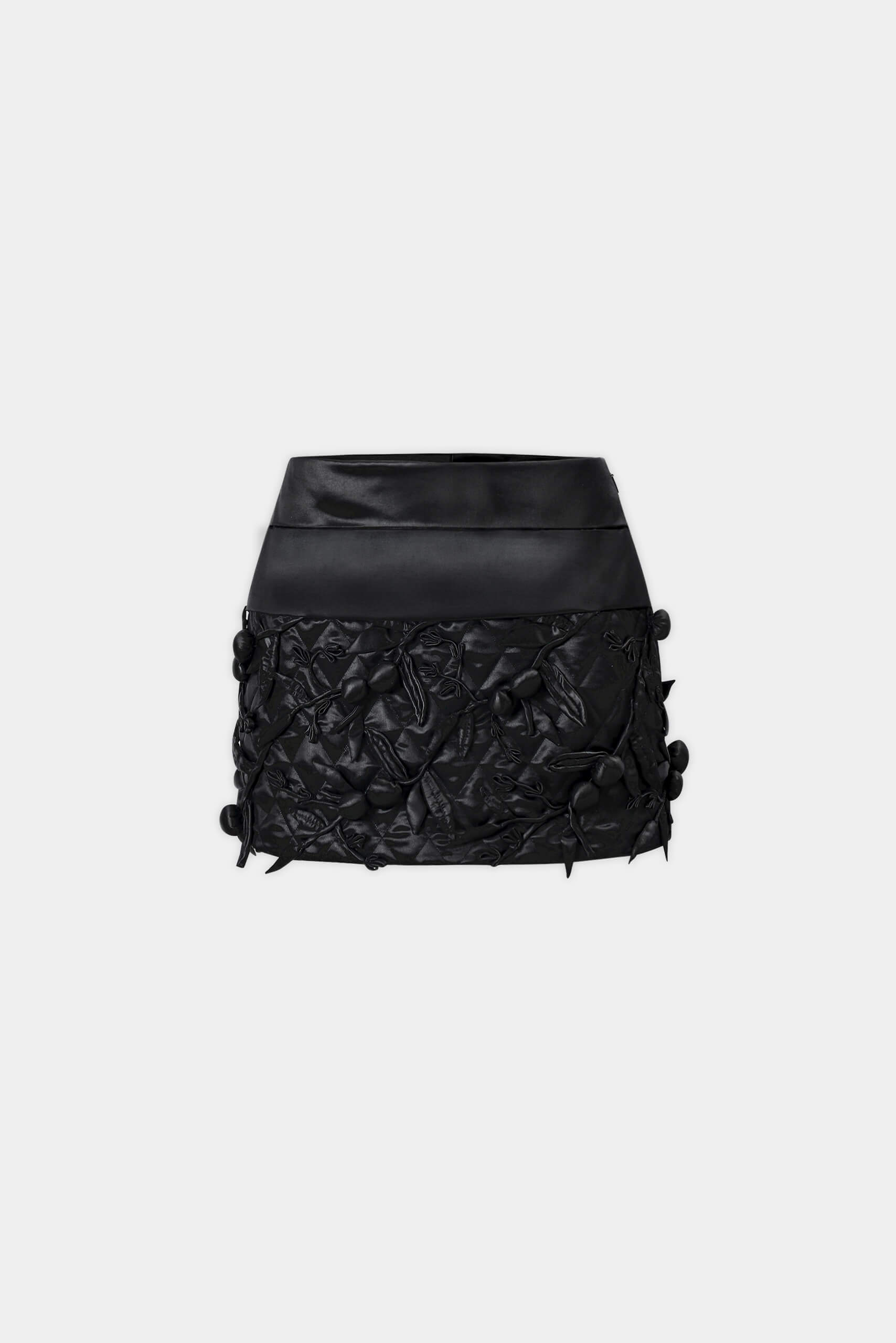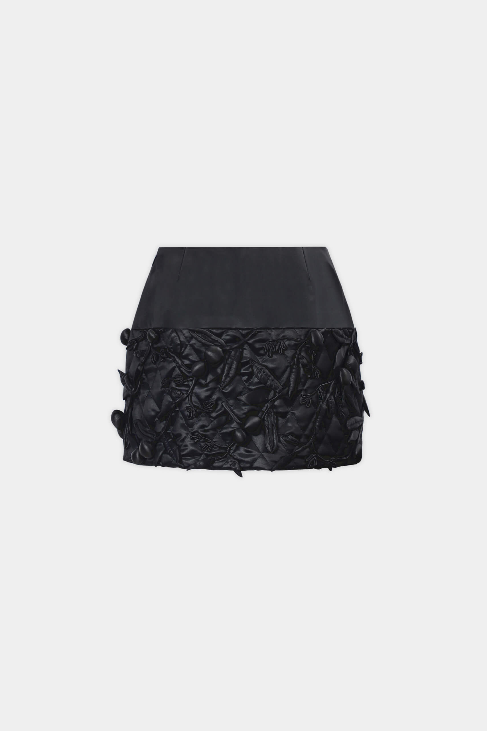 QUILT-TRIMMED LACQUER SILK MINI SKIRT