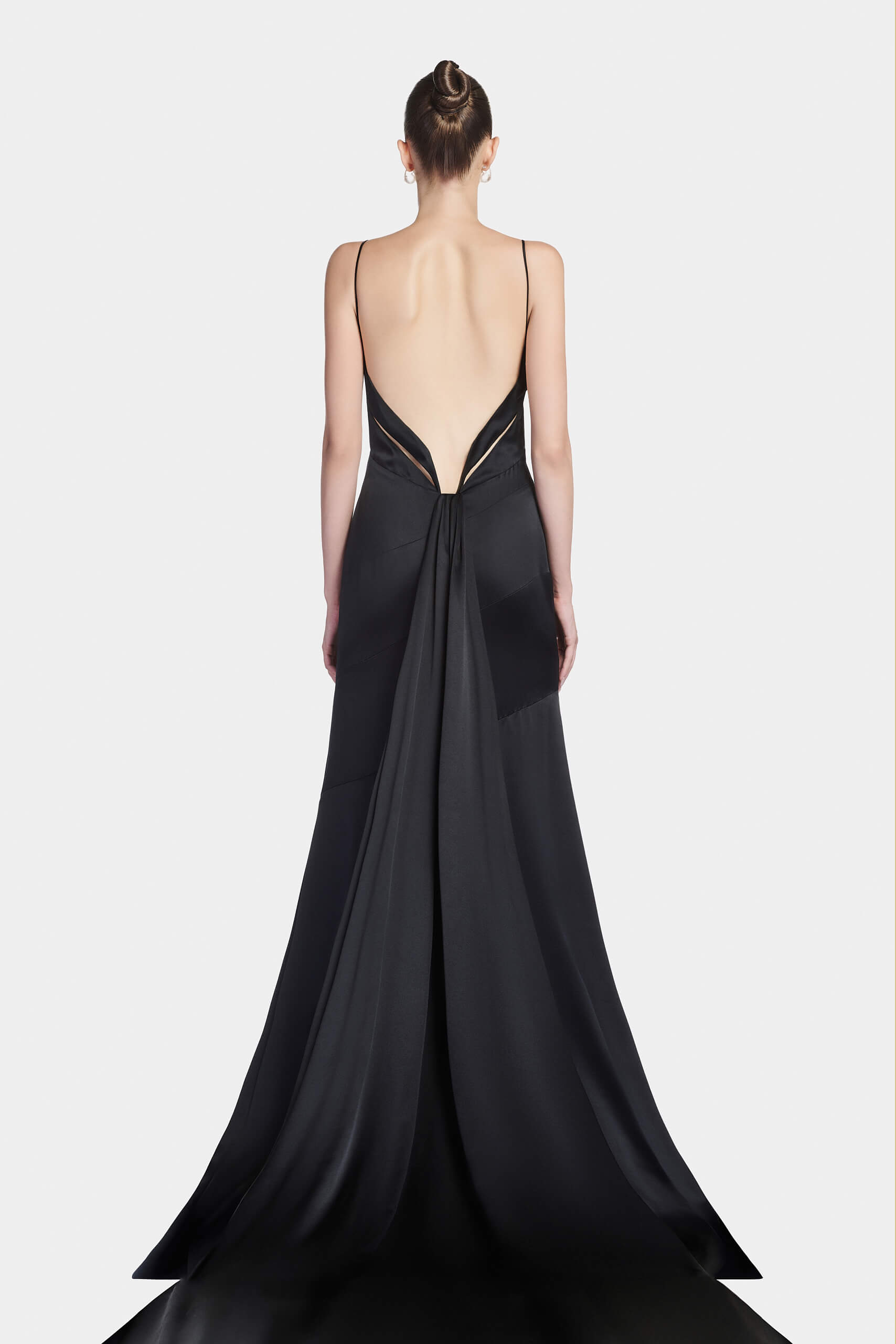 SATIN CUT-OUT LOW-BACK TRAINED DRESS